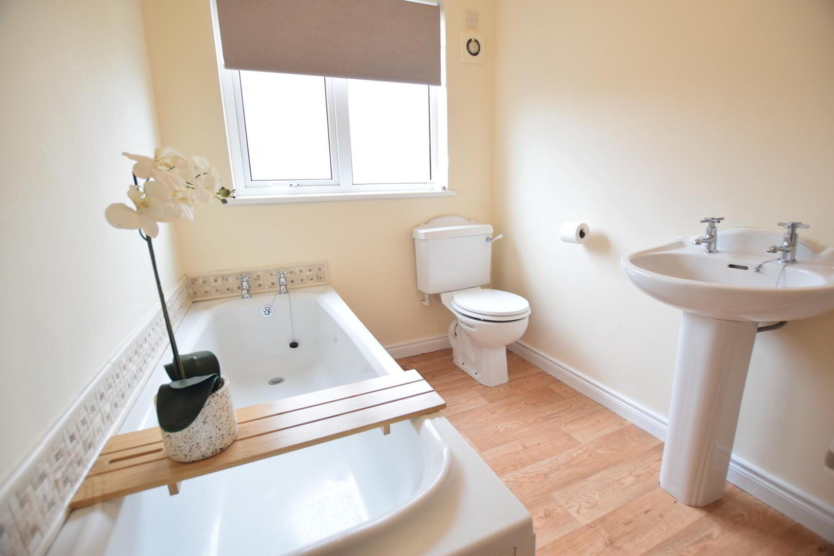 Bath. W.C. WHB. Vinyl flooring.