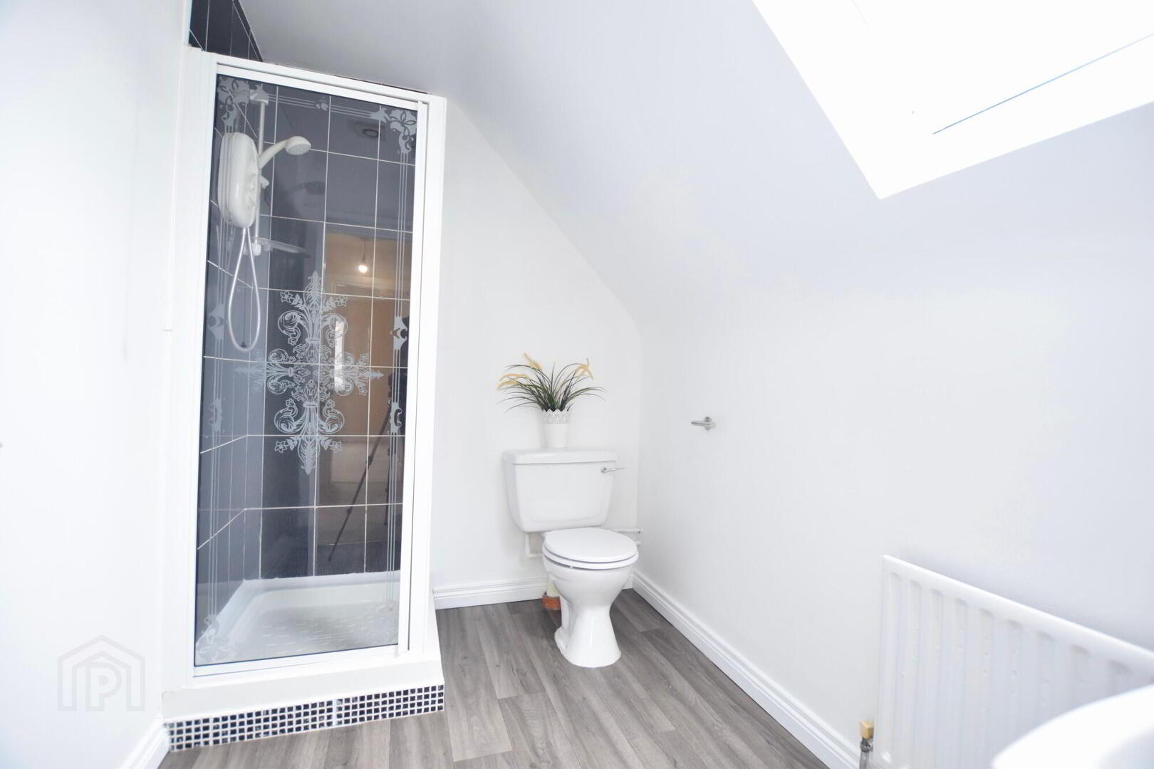 W.C. WHB. Shower. Vinyl flooring.