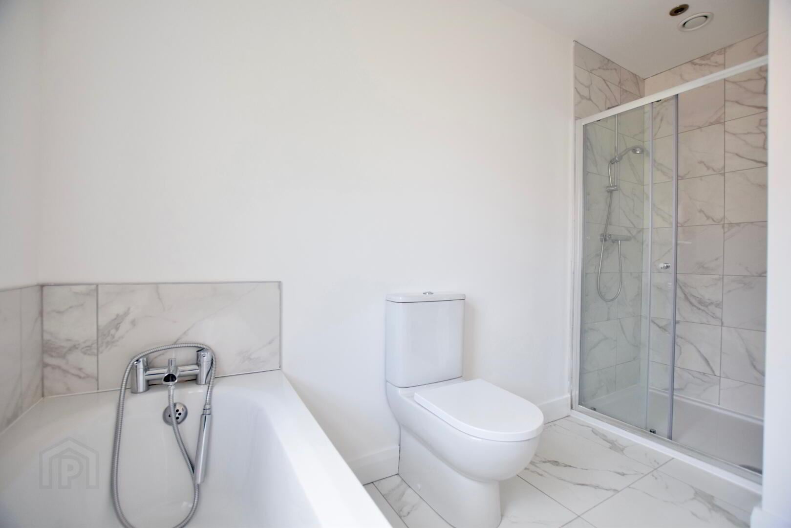 Upstairs, the property boasts three well-proportioned bedrooms, including a spacious master bedroom featuring its own contemporary ensuite. A beautifully finished family bathroom serves the remaining bedrooms, offering a sleek and modern design.