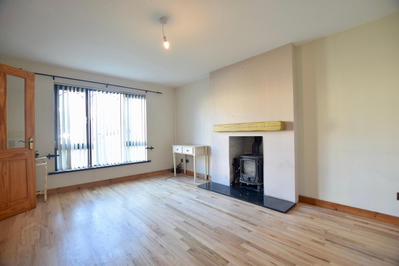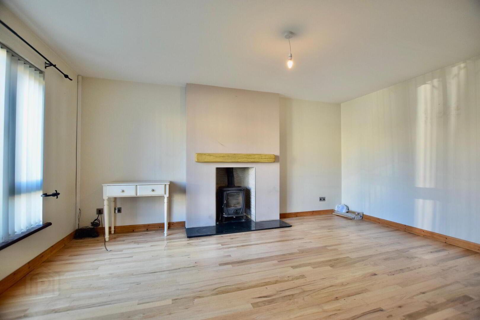 Front facing. Wooden flooring. Woodburning stove. TV point.