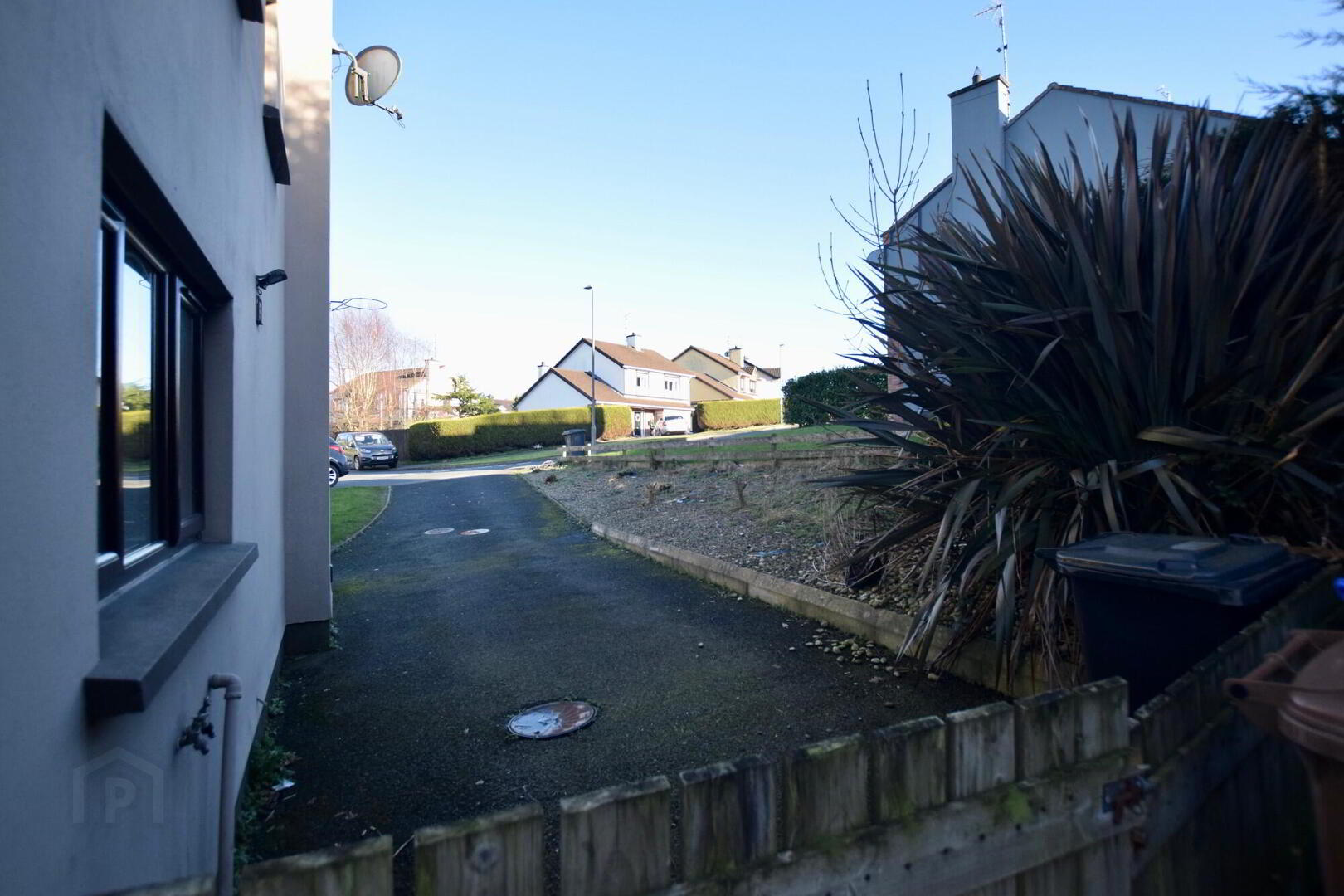Driveway and parking area to front and side. Lawned area to front. Large concrete area to rear.