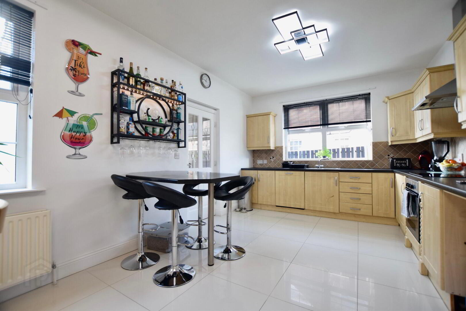 High & Low level units tiled between. Space for fridge/freezer. Integrated oven/hob & dishwasher. Door to utility area.
