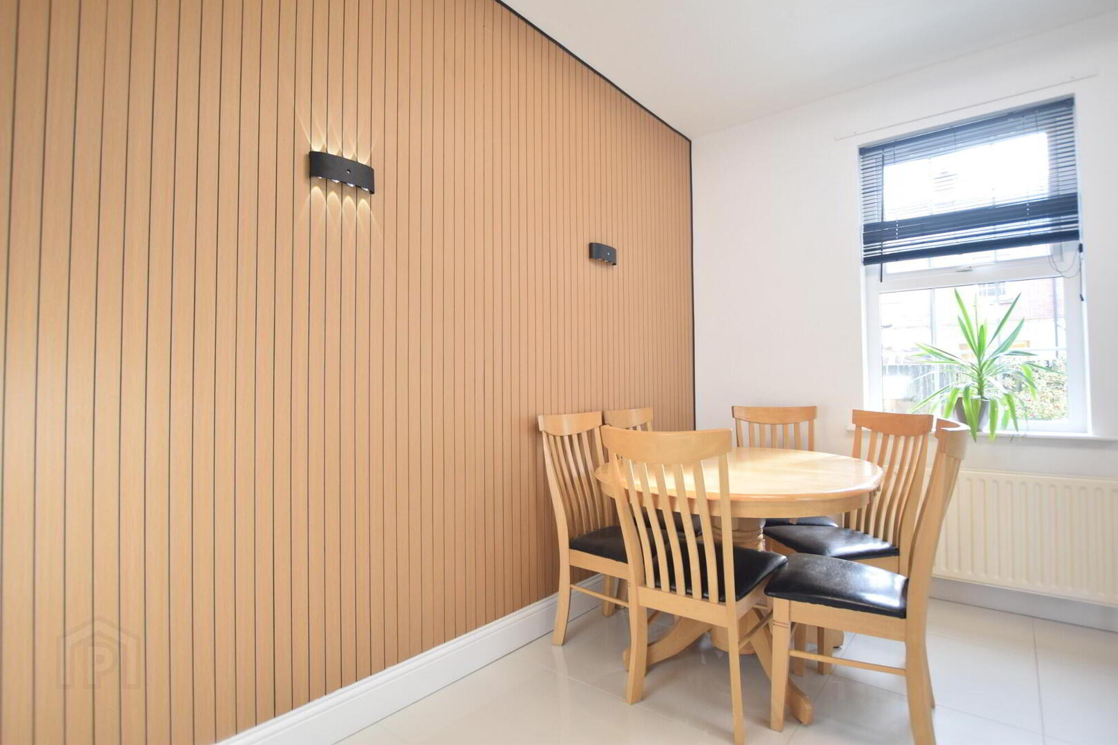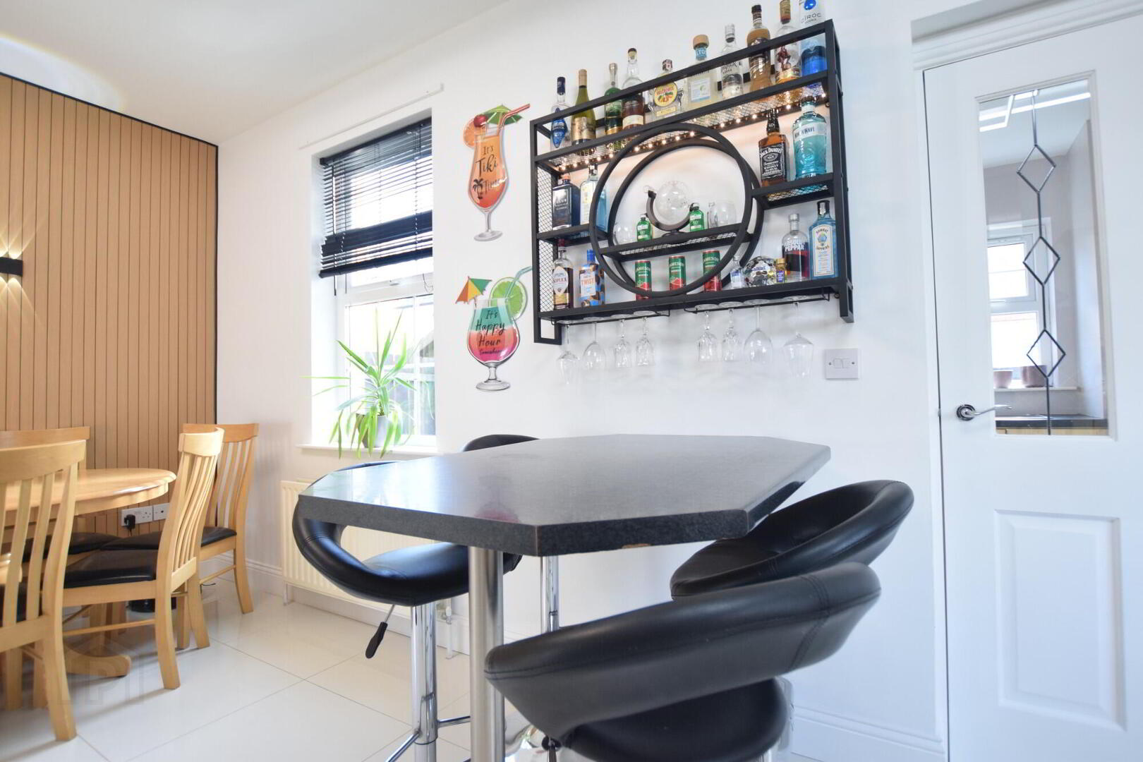 Wooden entrance door. Tiled floor. Phone point.