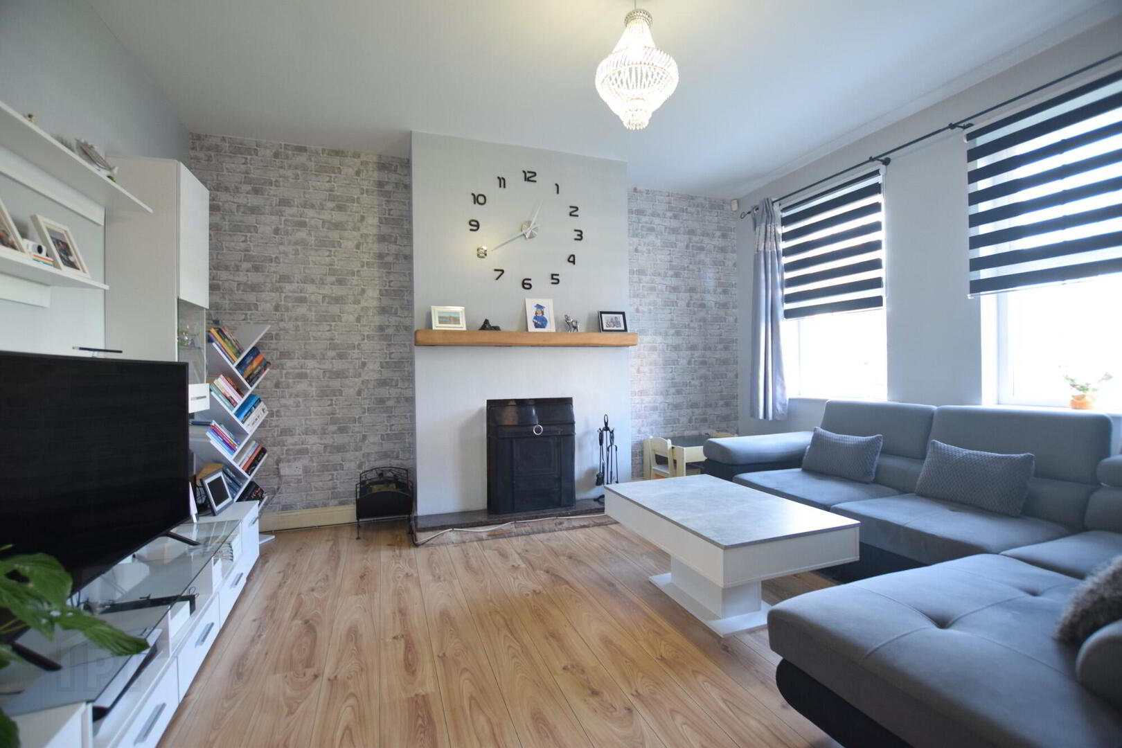 Twin front facing window. Laminate flooring. Wood burning stove. TV Point.