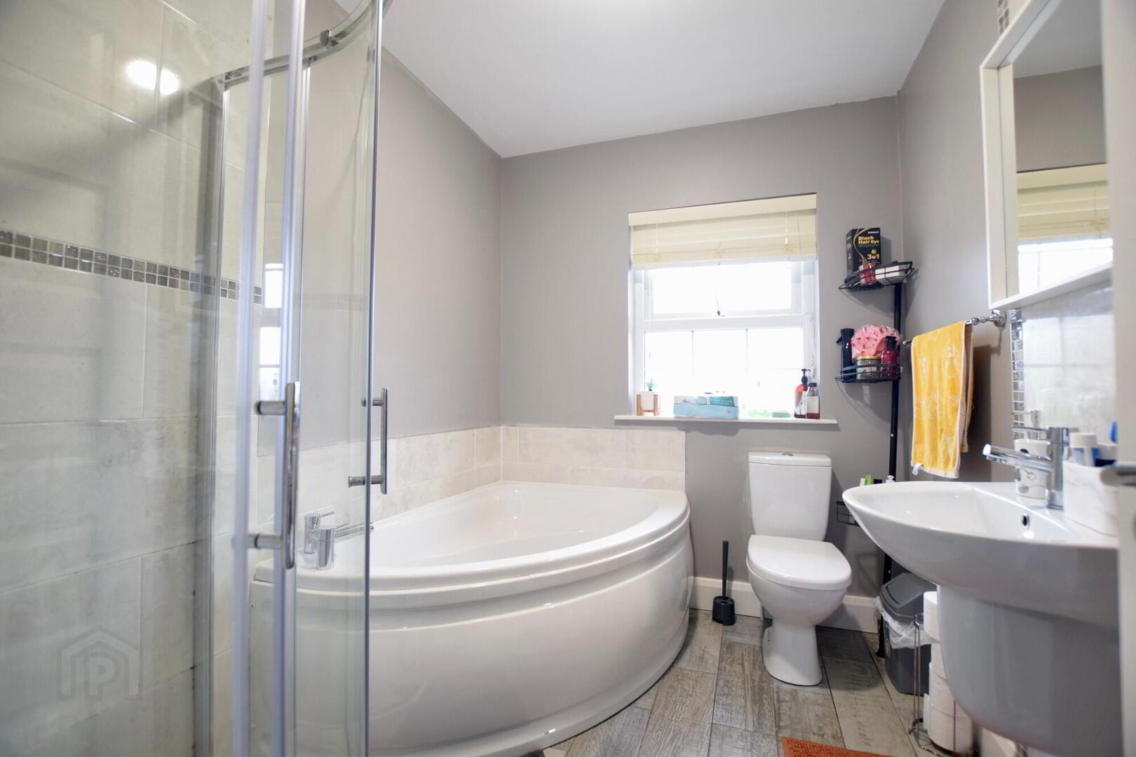 WC with WHB. Bath. Tiled flooring. Separate shower.