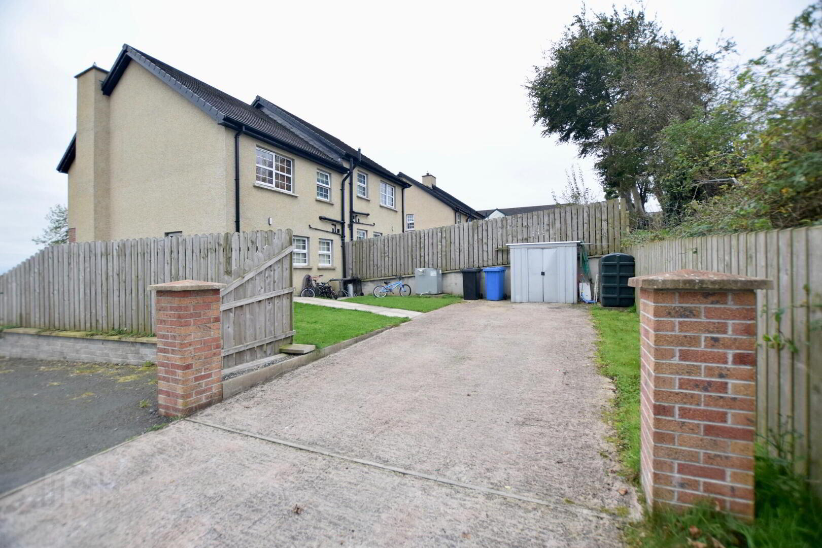 Lawned gardens to front, side and rear. Concrete driveway/ yard to rear