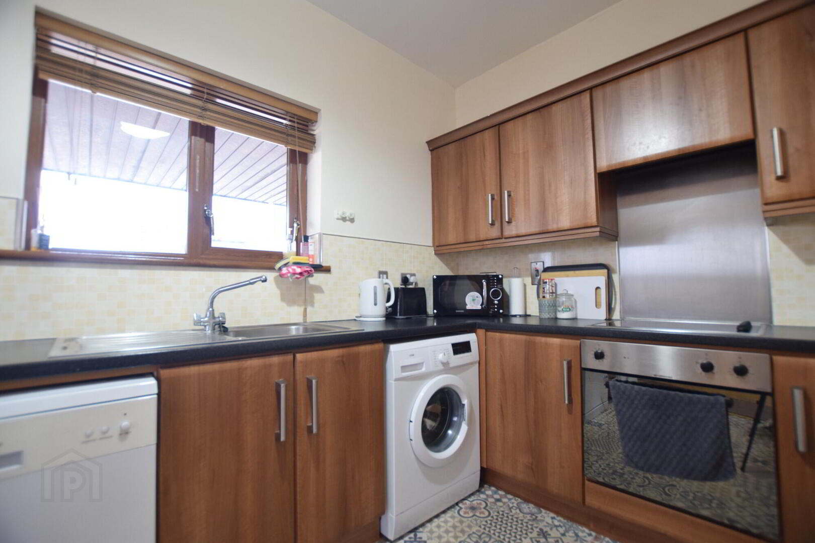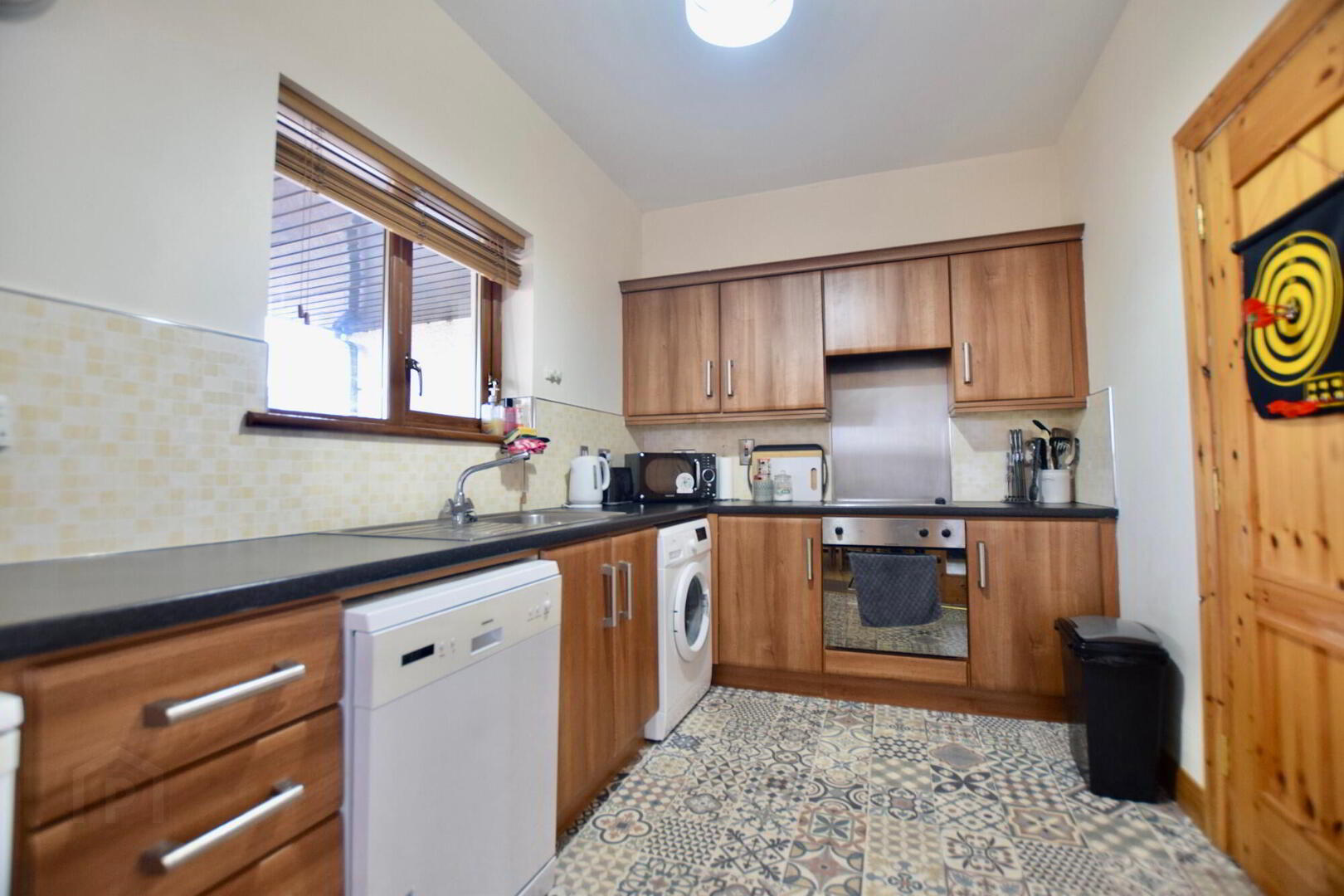 (Measured AWP) Rear and side facing living room and dining area. Laminate floor to living area. Fireplace with open fire. TV and phone point. Kitchen area comprises of fully fitted kitchen with high and low level units. Sink. Integrated oven/ hob/extractor. Fridge, dishwasher, washing machine. Hot press/pantry. Vinyl floor.