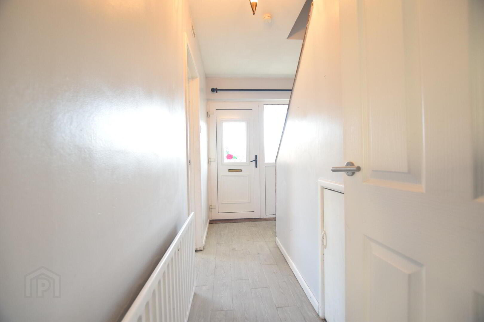 Part glazed uPVC door with partially glazed side panel. Phone point. Tiled floor. Understair storage.