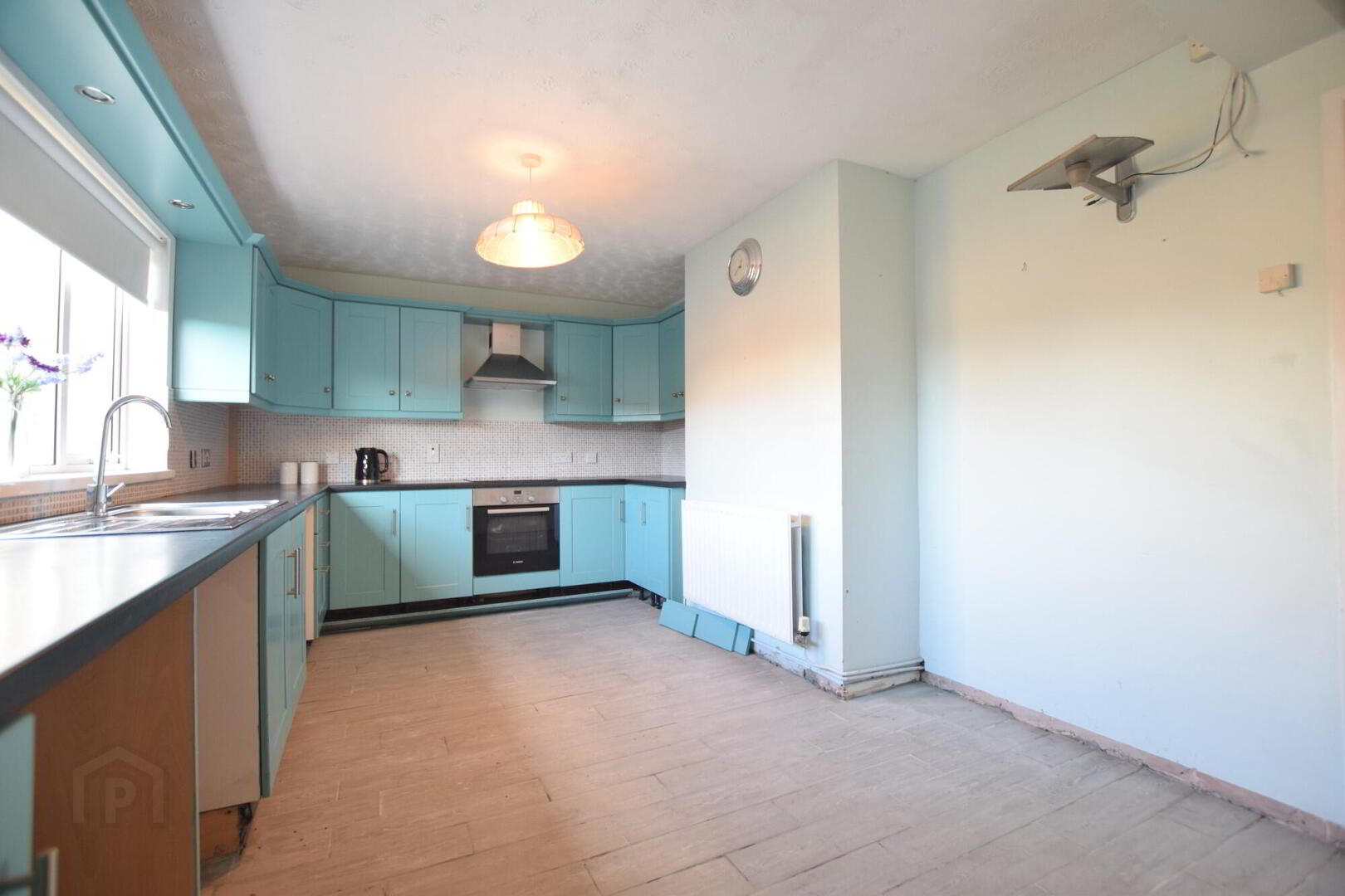 Carpets. Blinds. Light fittings. Wheelie bins, blue, black & brown. Oven/hob.