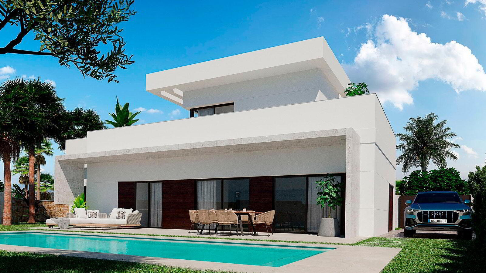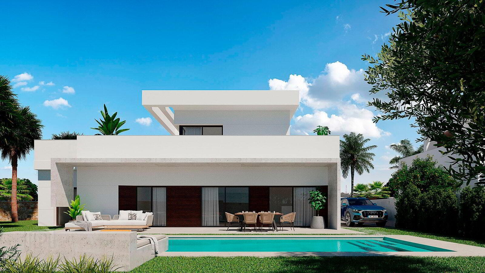Adapted to the modern lifestyle, it is built with high quality glossy materials and in perfect architectural harmony. Featuring open plan living areas with a beautifully decorated kitchen with lighting features and large sliding glass doors that connect directly to the private gardens and swimming pool, the perfect home to spend your Mediterranean days!