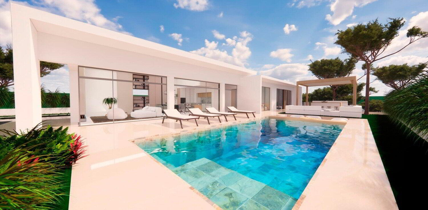 Exclusive villas on plots of 800 meters located in the very centre of "Pinar de Campoverde" a village situated on a wooded hillside, 7 km from the beaches of the Costa Blanca overlooking the Mediterranean and with all amenities within walking distance.