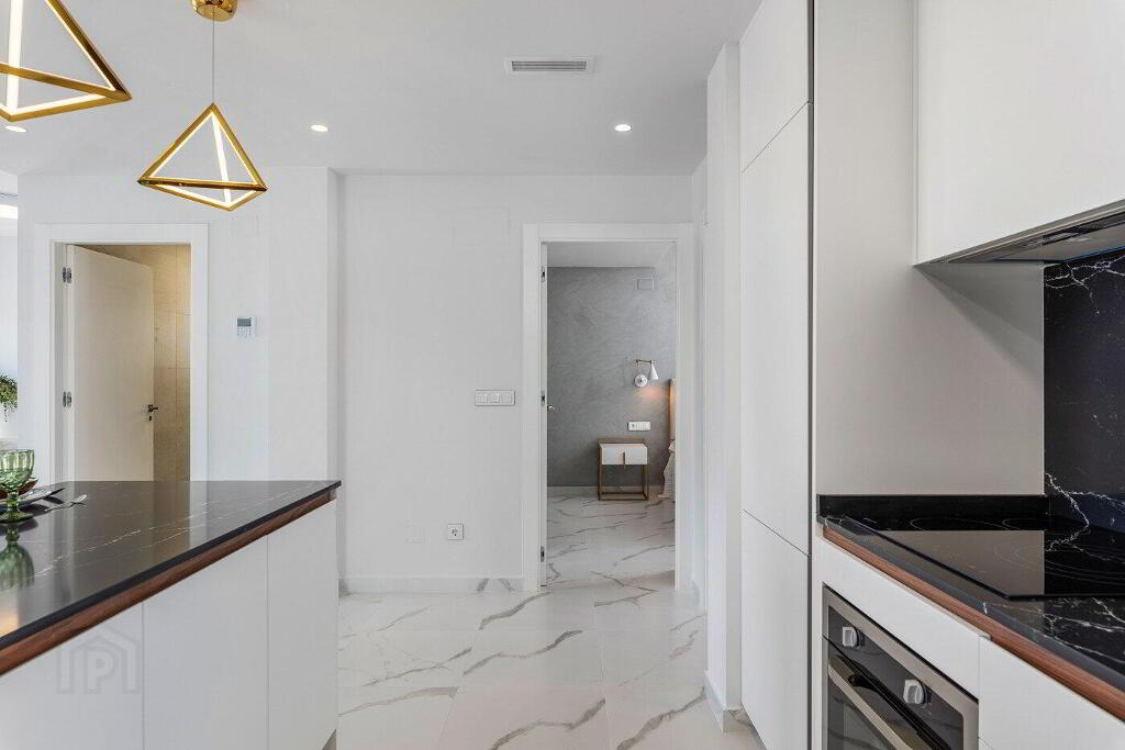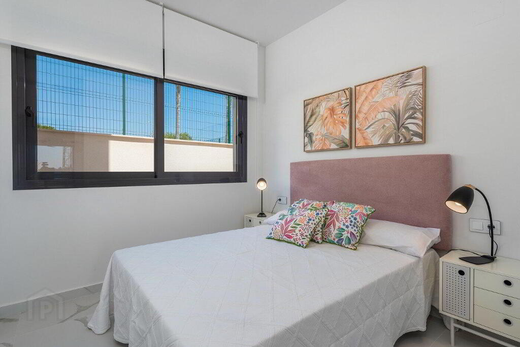 The top floor bungalows have a constructed area of 92 m2 with 3 bedrooms, 2 bathrooms, a solarium of about 77m2 and an optional 3x5 swimming pool. The price for the swimming pool is 18.000,00