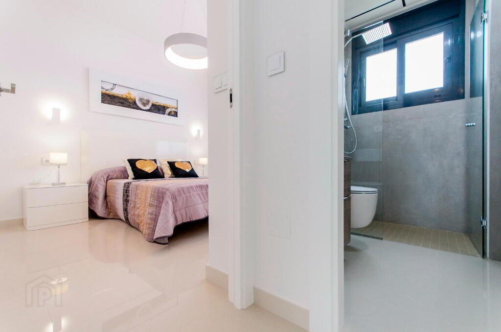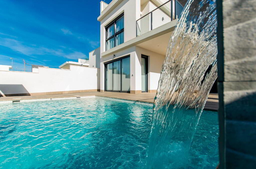TERRACE- Outdoor shower with tap at the bottom of the shower.- Swimming pool with two coloured lights, ladder, waterfall and bench under the waterfall. Depending on the model, the size will be 6x3 m, 7x4m or 8x4 m.- Pre-installation for electric motor in vehicle access door.- Charging point for electric car in plots- Armoured front door of the house.- Climalit double glazing according to regulations for acoustic insulation.INTERIORS- Built-in wardrobes lined with textile, drawer units and LED lights inside.- Pre-installation of ducted AC/DC throughout the house.BATHROOMS- Mirrors with LED lights- Shower screen with fixed glass- Pre-installation for heated towel rail in bathroomELECTRICITY- Points prepared for the installation of interior and exterior lights- 200-litre aerothermal heater- Video intercom- All electric blinds- Pre-installation for motorised curtains in double height glass models (in living room).