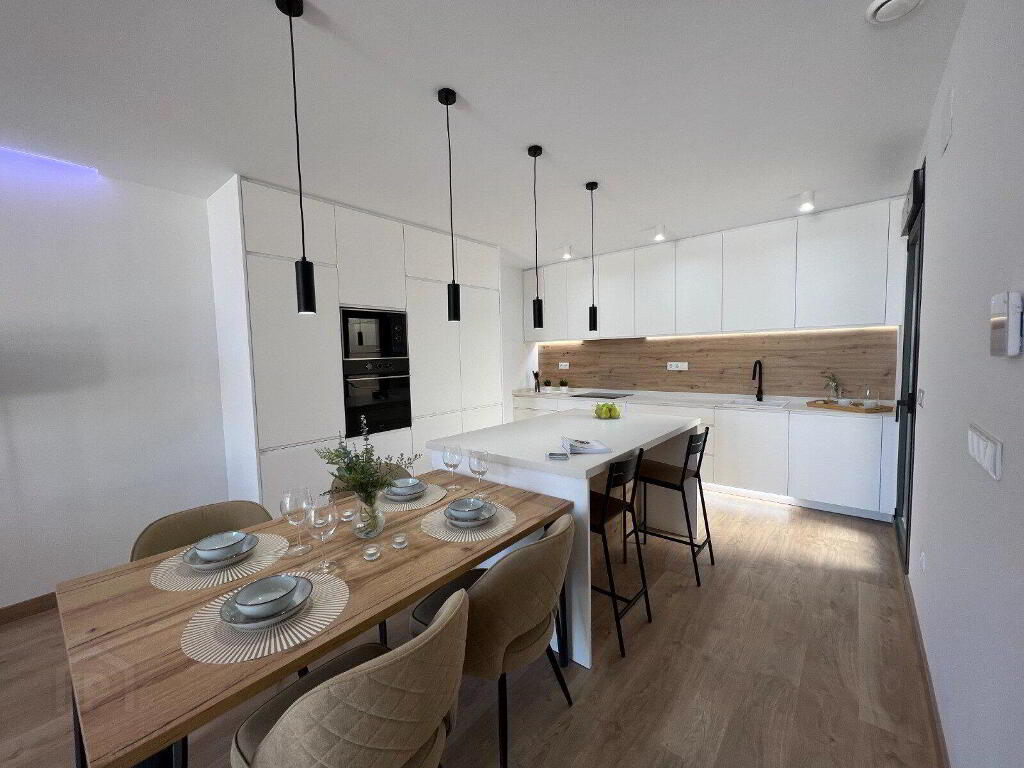 This project consists of 12 luxury homes built on 2 floors with open plan kitchen-dining room, living room with large windows and access to the garden, 3 bedrooms, 3 bathrooms, terrace, private garden with swimming pool and parking space.