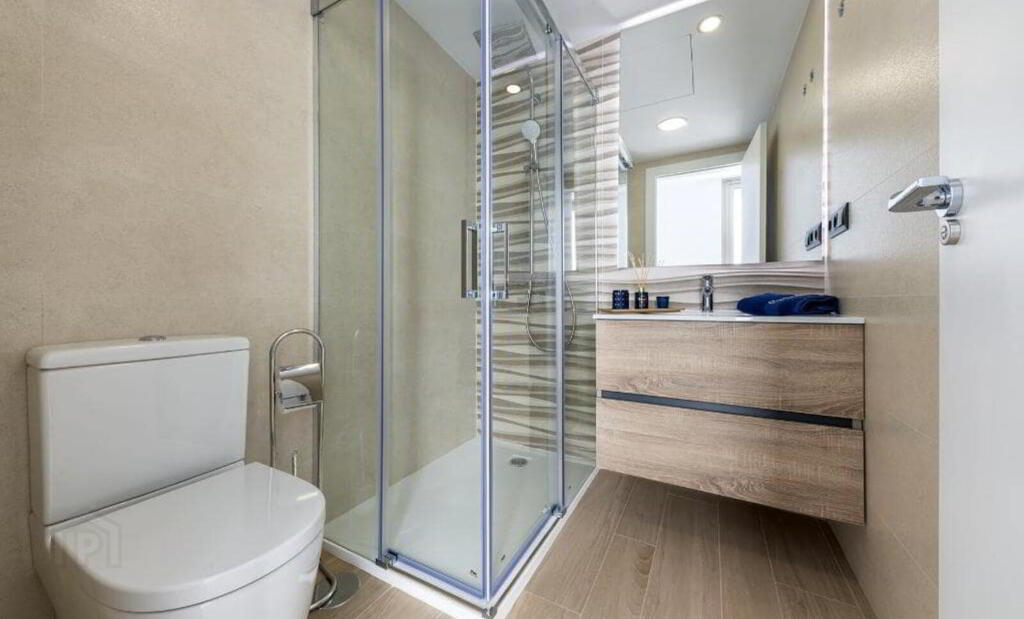 The Standard villas (4 in total, 2 more to be built) include a spacious living/dining room, a fully equipped kitchen, two or three bedrooms with fitted wardrobes, three bathrooms, a front terrace overlooking the pool and swimming area, a side garden, off-road parking, a large roof solarium with stunning coastal views, a storage room and a basement garage on the plot.