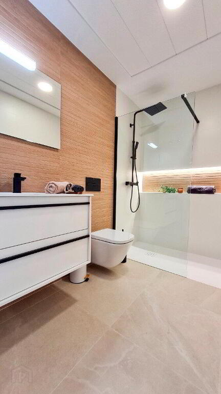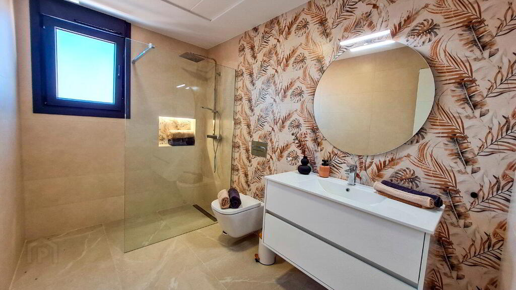 - Fully fitted bathrooms with vanity unit, suspended toilet with built-in tank, mirror, rainfall shower and shower screens.