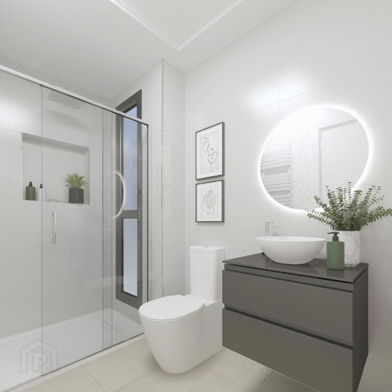 Includes:- Motorised thermo-lacquered aluminium shutters.- Double glazed windows- Armoured front door- Fitted wardrobes in bedrooms with drawer units- Pre-installation of hot and cold air conditioning, by means of ducts.- Domestic hot water production by renewable energy system- Electric underfloor heating in bathrooms- Shower screens- Electrical appliances included: ceramic hob, oven, microwave, filter unit, glass-finish refrigerator, integrated dishwasher and washing machine.- Video intercom- Swimming pool - Automated sliding door in car park- Interior recessed luminaires and exterior luminaires on façade and solarium