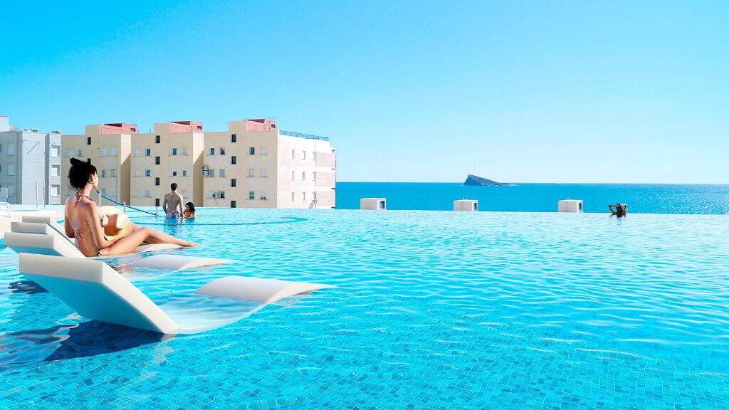 The development consists of a 30-storey tower and a 40-storey tower, both facing south. The typologies of homes are very varied, you can choose between Excellence flats with 1, 2 and 3 bedrooms with 1 or 2 bathrooms and Premium flats with 2, 3 and 4 bedrooms with 2 or 3 bathrooms. A design that seeks maximum comfort, and that will allow you to enjoy the Mediterranean like never before. The terraces (covered and uncovered) will have glass railings that allow you to enjoy the views from the inside. The residential is set to become an icon of the Benidorm skyline, a benchmark on the Poniente beach.