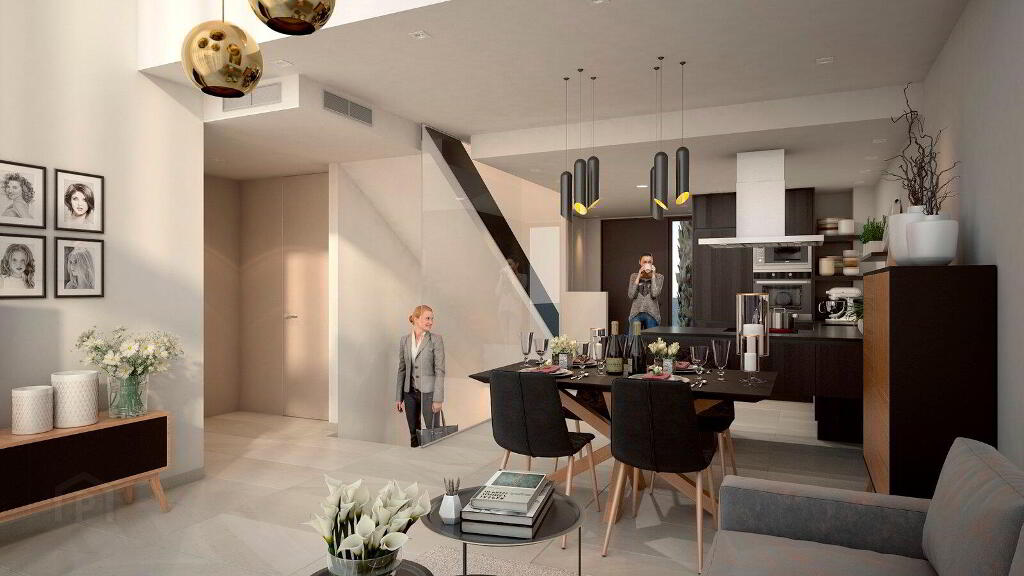 It also has two bedrooms and a bathroom fully equipped with washbasin, mirror, full shower screen and underfloor heating for greater comfort. On the first floor is the master bedroom with panoramic views to the exterior, private bathroom and access to the solarium. In addition, each bedroom includes ample wardrobes to maximise storage space.