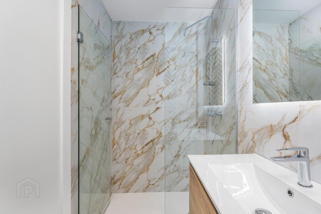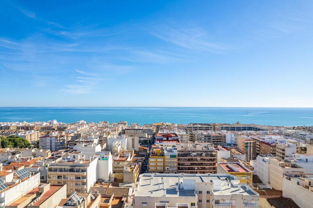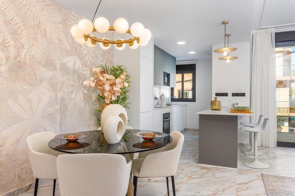 The master bedroom is over 12 m2 and you can walk through the sliding door to the large terrace for breakfast, this bedroom also has an en-suite bathroom, a wall wardrobe over 3 meters wide and is equipped with shelves, drawers and automatic lighting when you open the door. The other 2 spacious bedrooms also have fitted wardrobes, creating an efficient room layout. These 2 bedrooms share a bathroom. Of course, also included is the luxury kitchen, which is equipped with a breakfast bar and is located next to the spacious dining/living room, which in turn connects to the terrace. Of course, there is a lift in the complex which goes from the ground floor to the solarium.