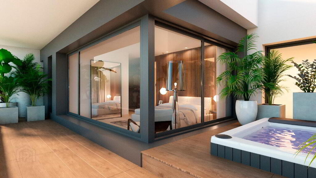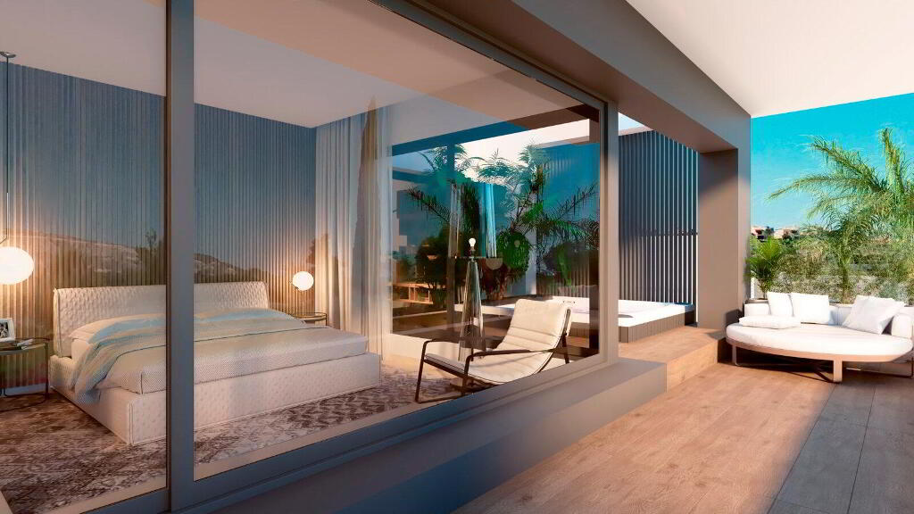 Their open-plan kitchen is state-of-the-art, fully equipped and designed for those who love gastronomy and comfort. In addition, the villas have air conditioning, fully equipped bathrooms with underfloor heating, home automation system and lift.