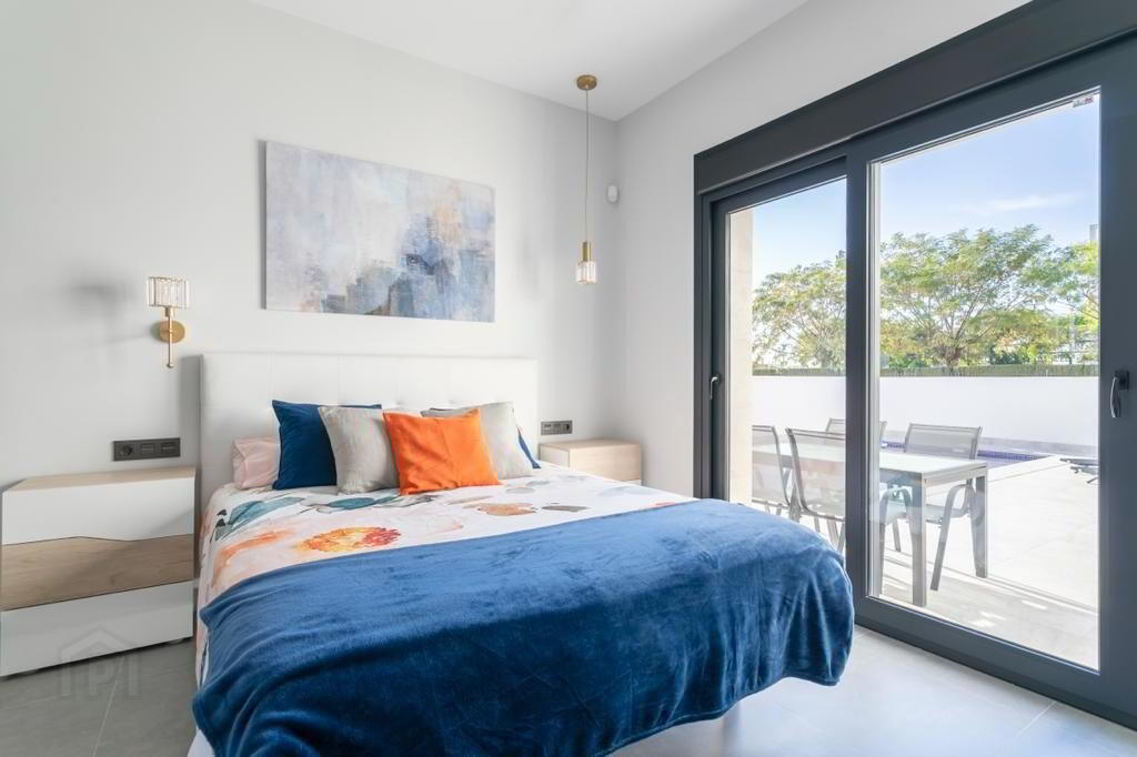 Opposite to the front of the property overlooking the pool with large patio doors is the master bedroom with en-suite bathroom. Towards the rear of the property is the second double bedroom and family bathroom.