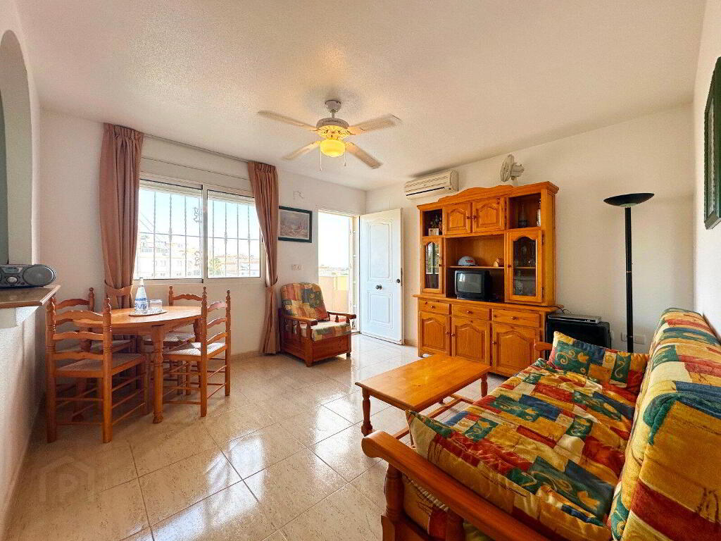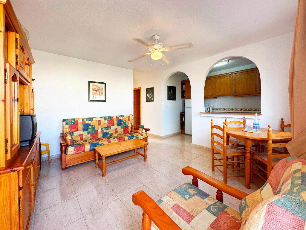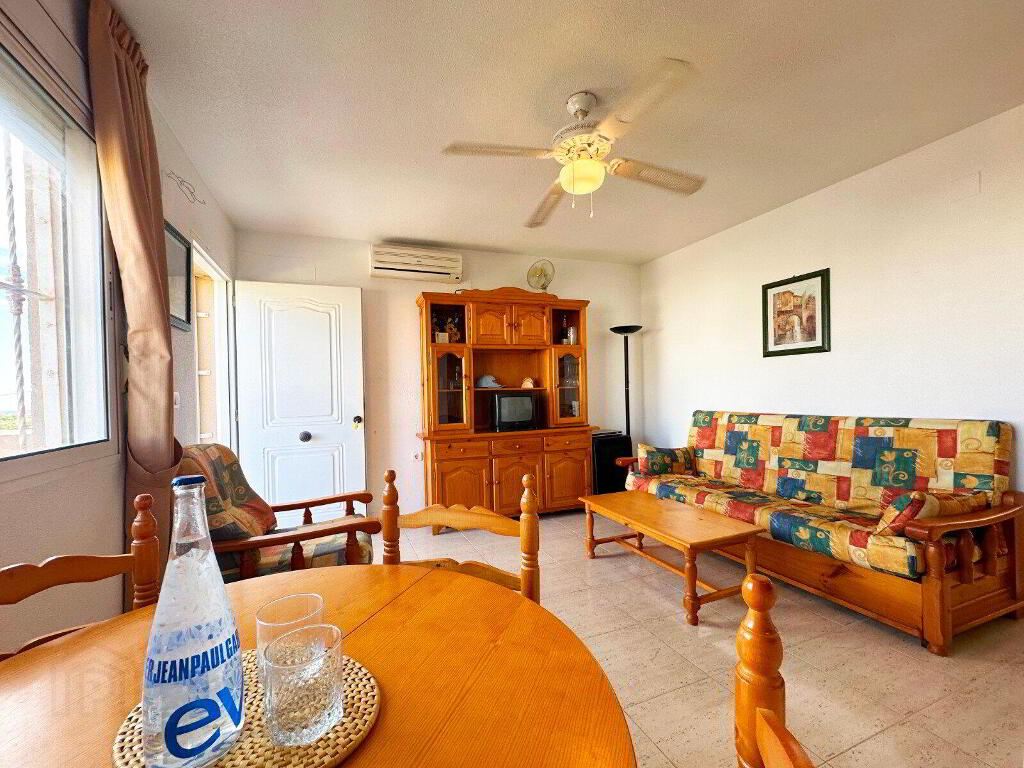 Discover the perfect blend of comfort and convenience in this delightful 2-bedroom, 1-bathroom first floor bungalow with private Solarium, situated in the desirable Miramar-Golf complex in El Galan/Villamartin.