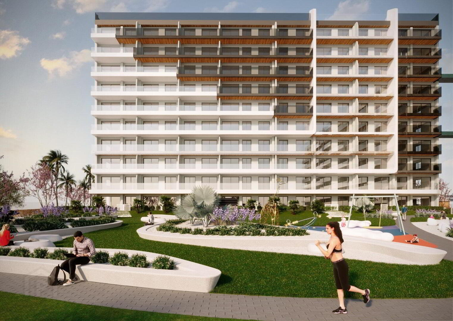 These luxury apartments are available on the ground floor with private gardens, middle floor with solarium terrace and penthouse options with private solarium. Each property consists of a lounge with patio doors leading to the terrace, an open plan kitchen, a dining room, a master bedroom with fitted wardrobes and bathroom, 1 or 2 further double bedrooms and a guest bathroom.