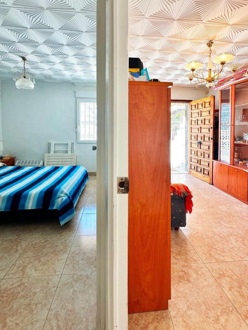 Traditional semi-detached bungalow comprising a living-dining room, separate kitchen with patio, two bedrooms and a bathroom, with a spacious terrace and storage room.