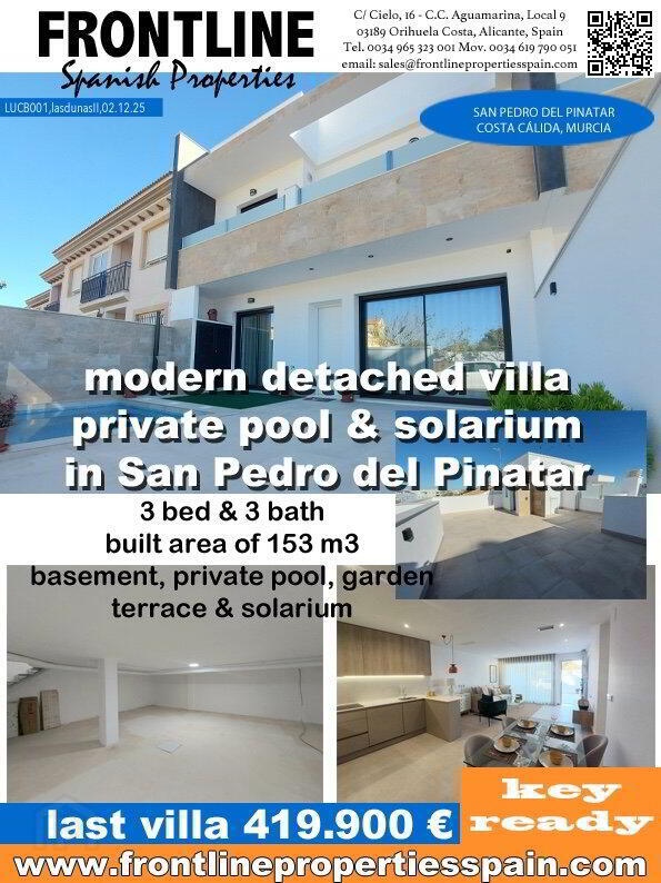 All the properties have 3 bedrooms and 3 bathrooms spread over two floors, plus a basement and solarium, providing spaciousness and comfort throughout this wonderful modern villa by the sea.