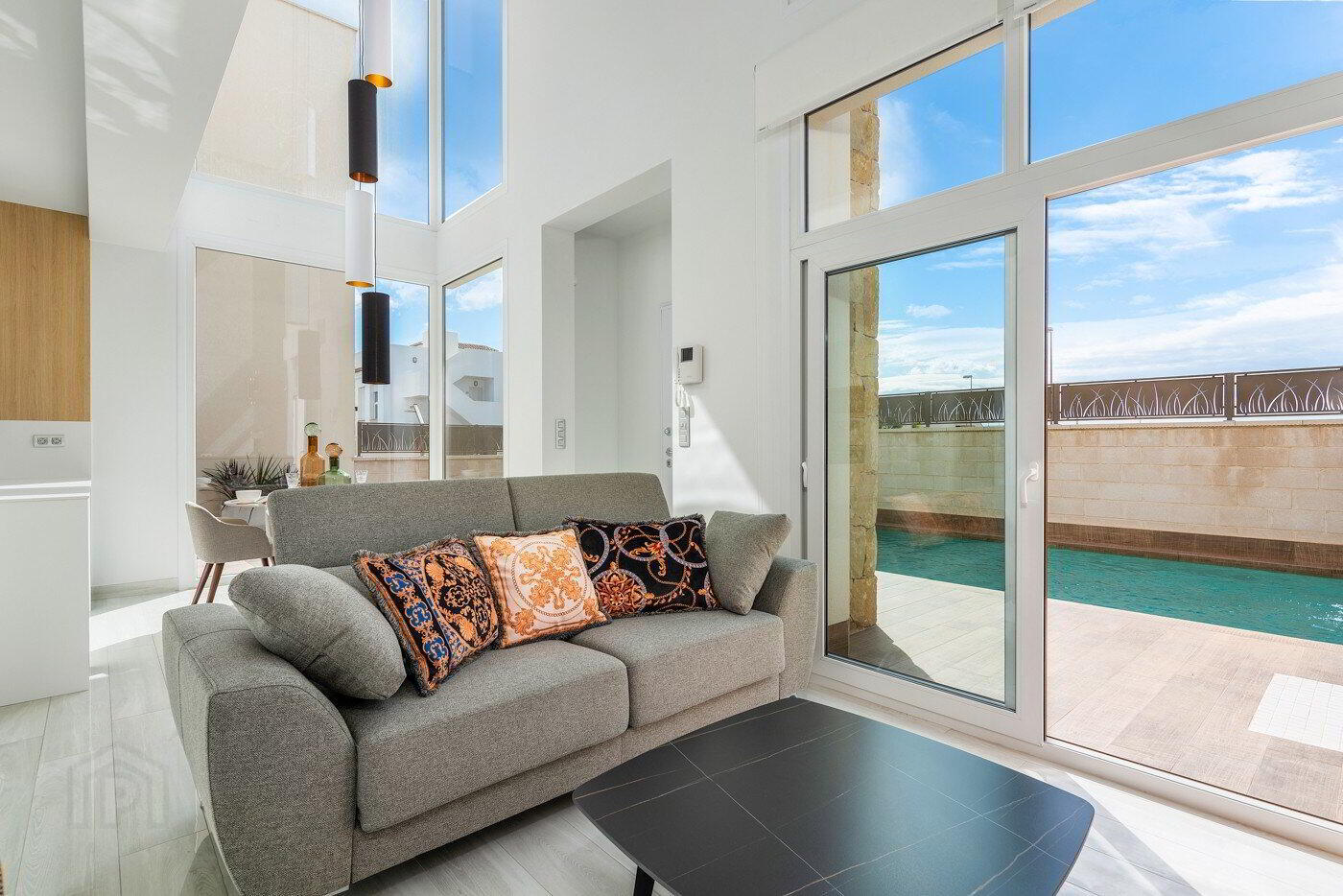 This sunny villa belongs to the new Residencial LAGUNA AZUL, a beautiful complex of 11 independent villas with 3 bedrooms and 3 bathrooms with large private plot (swimming pool, garden) + private solarium. The homes are designed to enjoy moments of privacy and leisure, with the family, with an exquisite design that will give a leap of quality to your life.
