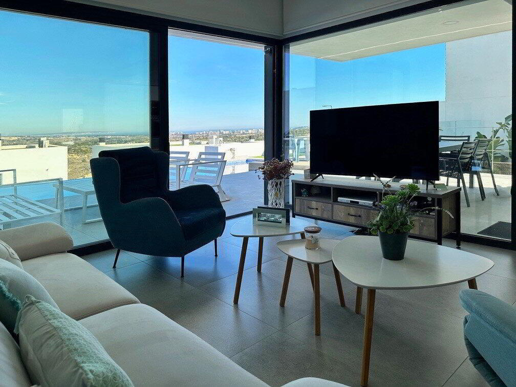 This luxury modern villa SKYLINE II situated in Rojales, has been designed with a lot of light and open spaces, with basement, garage, private pool, spacious terraces and landscaped garden to enjoy the Mediterranean climate year-round.