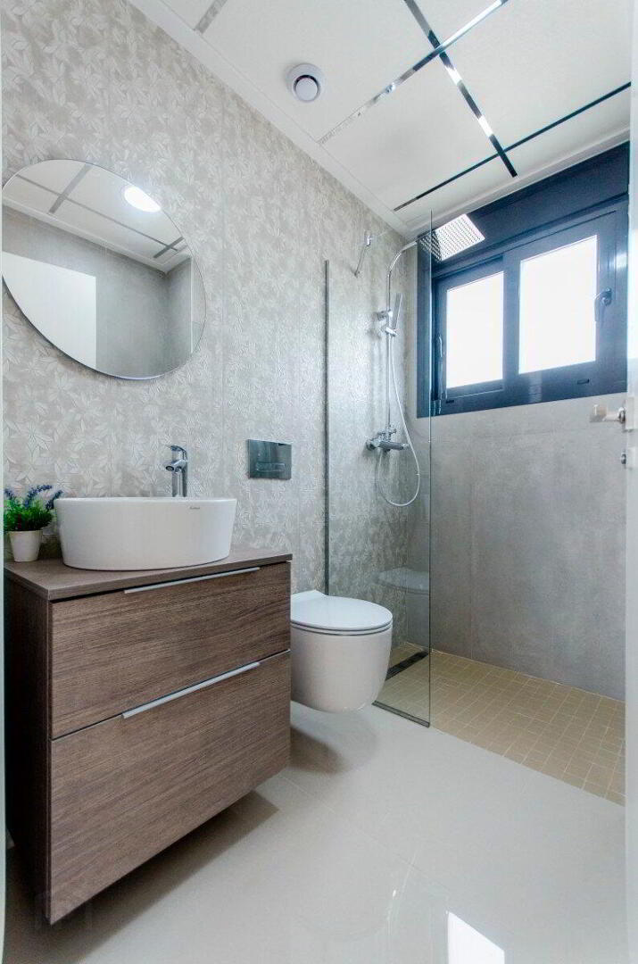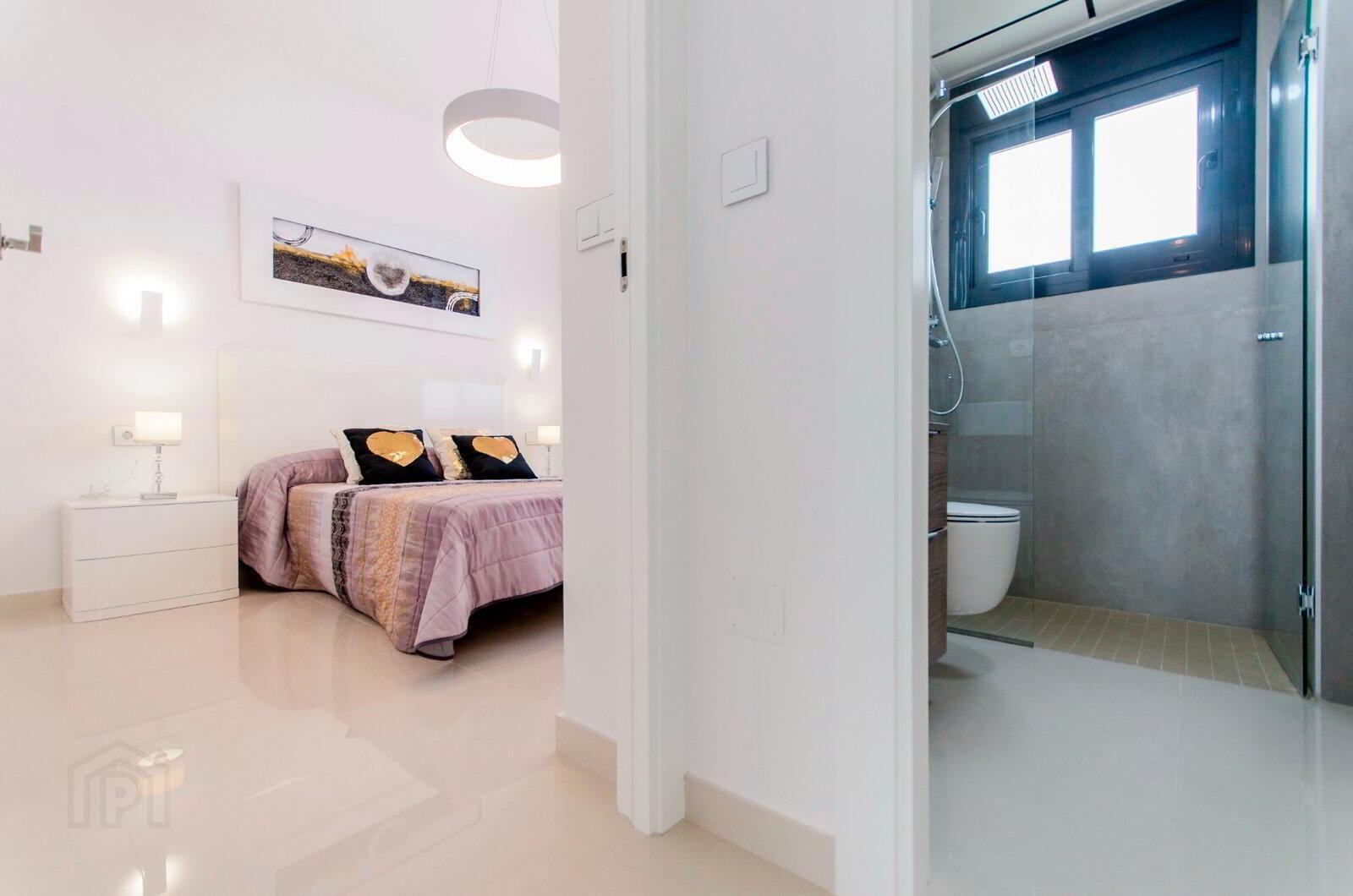 TERRACE- Outdoor shower with tap at the bottom of the shower.- Swimming pool with two coloured lights, ladder, waterfall and bench under the waterfall. Depending on the model, the size will be 6x3 m, 7x4m or 8x4 m.- Pre-installation for electric motor in vehicle access door.- Charging point for electric car in plots- Armoured front door of the house.- Climalit double glazing according to regulations for acoustic insulation.INTERIORS- Built-in wardrobes lined with textile, drawer units and LED lights inside.- Pre-installation of ducted AC/DC throughout the house.BATHROOMS- Mirrors with LED lights- Shower screen with fixed glass- Pre-installation for heated towel rail in bathroomELECTRICITY- Points prepared for the installation of interior and exterior lights- 200-litre aerothermal heater- Video intercom- All electric blinds- Pre-installation for motorised curtains in double height glass models (in living room).